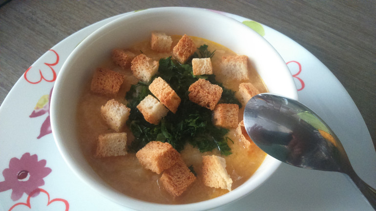 Ребенок затребовал гороховый суп с "корабликами" ->(сухариками) как в саду. Я вообще не супоед, живу практически без первого. Пошла в магазин за продуктами для супа и вместо гороха решила взять чечевицу ->(хотя я с опаской к такого рода продуктам отношусь))))
