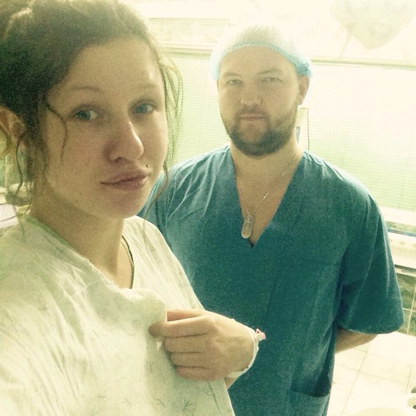 спустя час, светлана Циреновна снова пришла нас проверить, и в этот раз уже с новостями, жаль не веселыми для меня, схватки прошли полностью, окситоцин ставить нельзя, раскрытие всего 7 см, а ребенок без вод уже 13 часов! ну она мне и говорит, зайка, подписывай соглашение! ну ту меня как подменили, как будто камнем в голову стукнули, я как давай реветь( муж затрясся, смотрит на иеня так жалостно и понимает что ждать нельзя, а я это хоть и понимала но согласиться на кс просто не могла, ну не была к этому готова, совсем( сквозь слезы поставила закорючку, раздели меня и повезли в операционку оставив мужа перед ней в корридоре, дальше мне бы очень хотелось извиниться за мое поведение, НЕАДЕКВАТ! тряслась, плакала, слушать ничего не хотела, девочки медсестры всяческими способами успокаивали меня, за что отдельное спасибо, если б не они в обморок бы упала, добавили эпидуралки, позвали врачей, и зашла уже мне знакомая Светлана Цыреновна и с ней молодой такой симпатичный мужчинка как потом выяснилось хирург, который ну ооочсень много распрашивал меня о татуировках, пытался отвлечь,как резали не чувствовала, прикосновение, хруст пару движений, надавили иииии , бумс, вооот он вот он тот человек которого я ждала так долго, вот он тот крошка который закрывался маленькими ручками от узи, вот оно мое счастье, вот он мой маленький мир! я смотрела на него и плакала, плакала от счастья в то время как меня уже плаксой прозвали, но ведь он такой маааленький, он мой, мой главный мужчина!я забыла обо всем, и о том что в это время в моем животе капошились 2 пары рук, и о муже пускающем слезу за дверью, видела только его! приложили к груди на пару секунд и понесли мужу показывать, после этого он мне звонил через каждые 5 минут говорил о том как безумно любит меня , говорил что молодец и не капли не жалеет что был со мной, так что мужья там не лишние, если только они сами этого хотят ;)