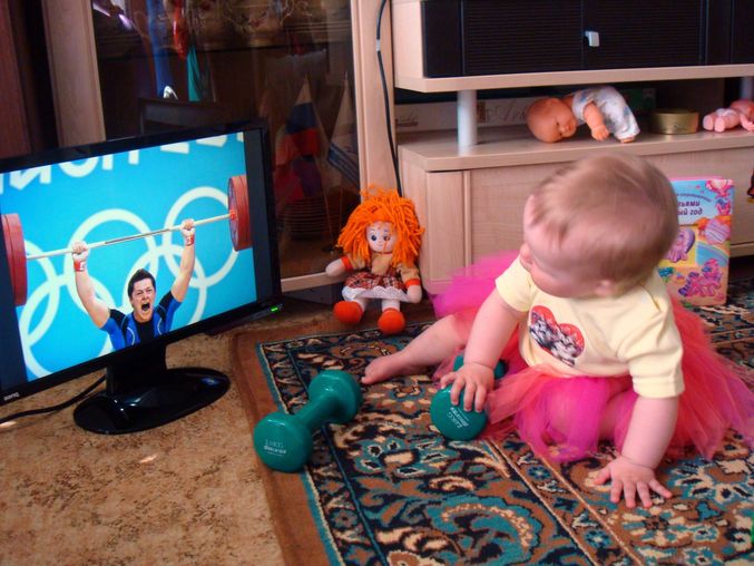 А еще сегодня чуть телевизор не уронила - это она за провод так потянула, что я как в Матрице кинулась к телеку))