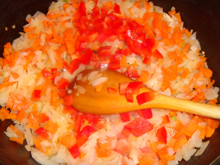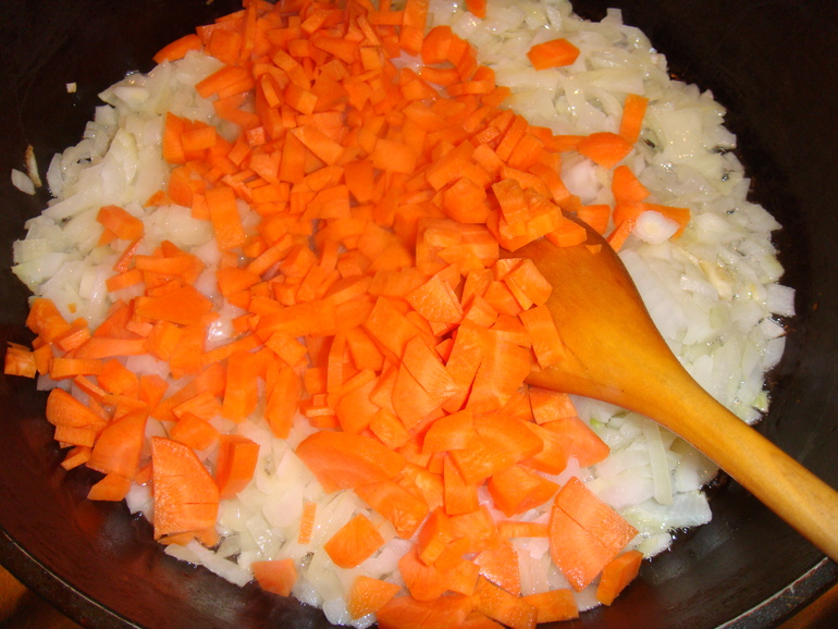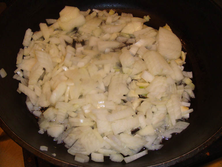 Доча часто готовит это блюдо. Спассеровать лук:
