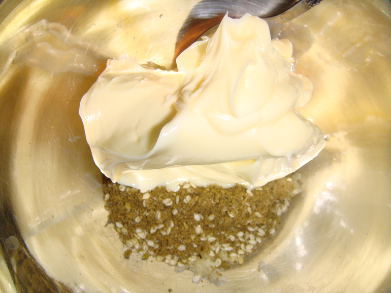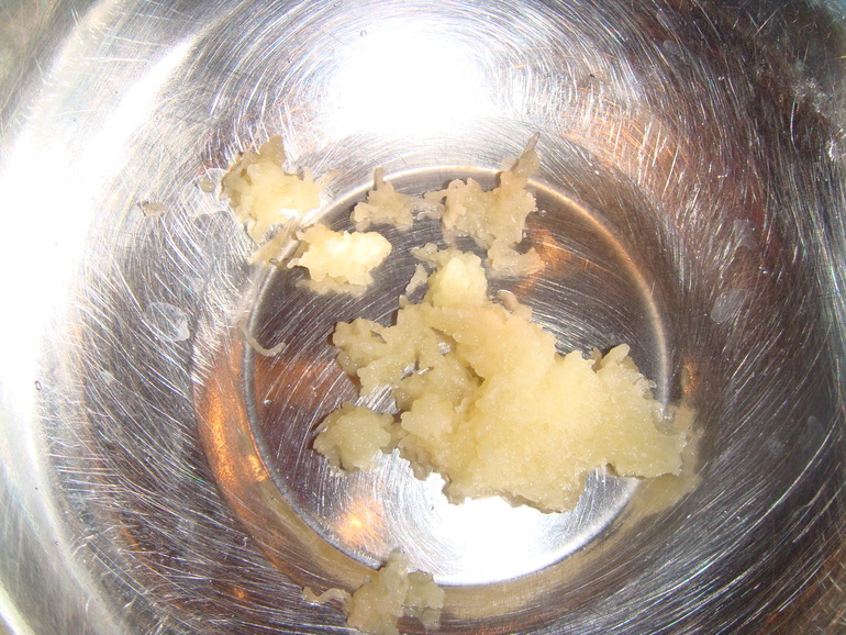 Натереть чеснок (или выдавить из чеснокодавки):