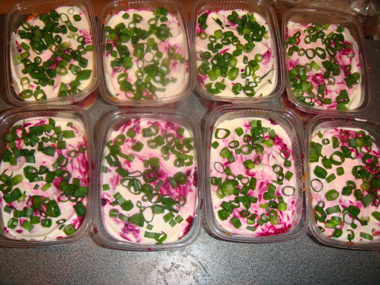 Да, вот еще, кстати! Стала делать селедку под шубой сразу порционно - в контейнерах по 250 г: