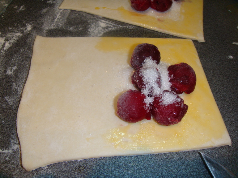 Ну, и еще часто готовим пирожки из готового слоеного теста. Заворачиваем туда все, что угодно - замороженные ягоды: