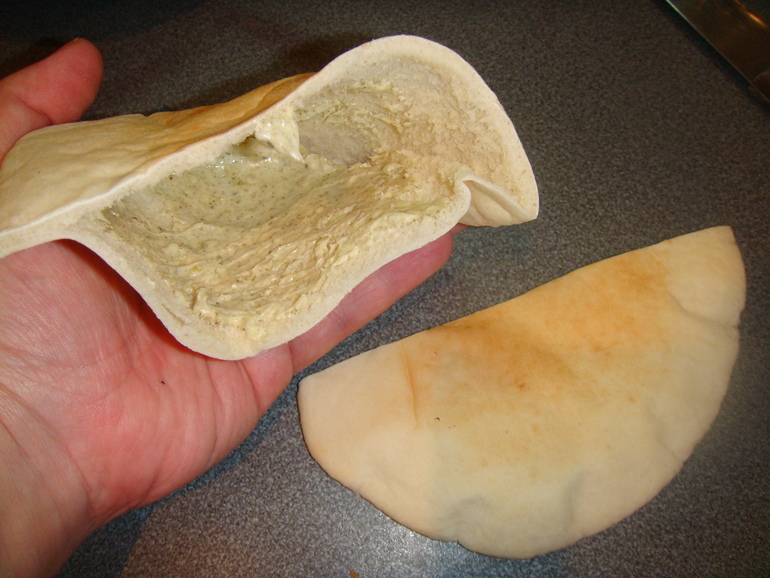Свежую питу разрезать пополам: