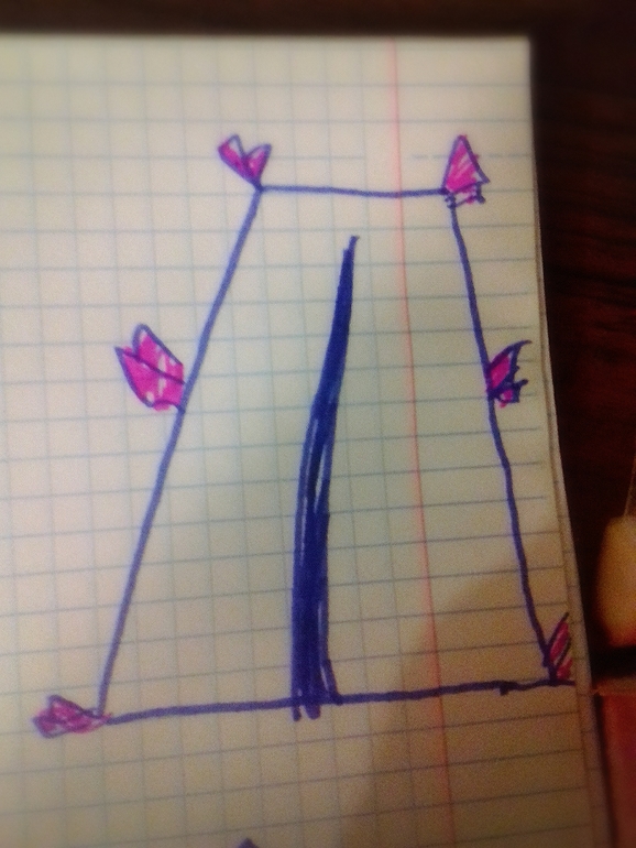2. Из ткани вырезаем по размерам стенки, по бокам пришиваем шнурочки, чтоб привязать стенку к палкам. Делаем такие 3 стенки. Четвертую стенку вырезаем таким же размером и делаем так-же шнурки, но по середине делаем разрез. Почти до самого верха. Эта стенка передняя.
