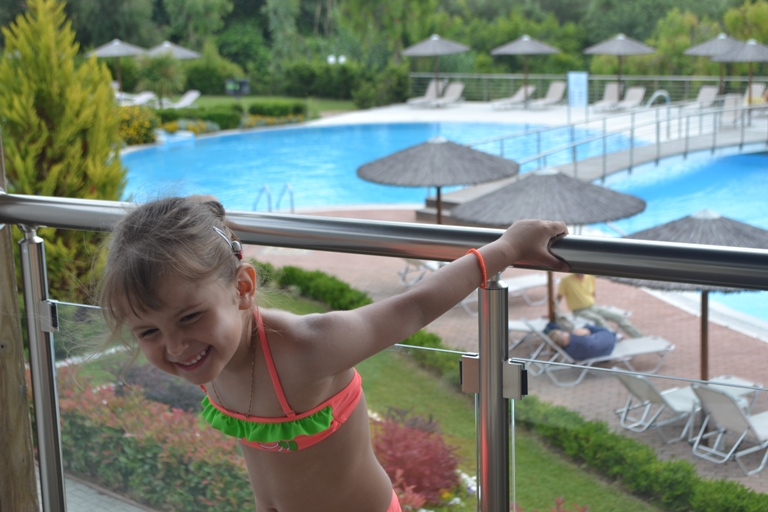 И поняла, что отдыхать в начале июня просто супер. Народу мало, не стоишь очередь в ресторане, лежаки пустые, а море уже теплое. Но как только перевалило за 15 июня наехал народ и начался сезон. Очередь за вкусными блинчиками увеличилась втрое, лежаки около самого моря заняты еще с утра и таким соням как мы, уже не достаются. Но зато сразу понаехало много деток со всех стран и вечером можно было спокойно полежать с мужем около бассейна, пока ребенок пытается сказать "My name is Nastya" и танцует мини-диско.