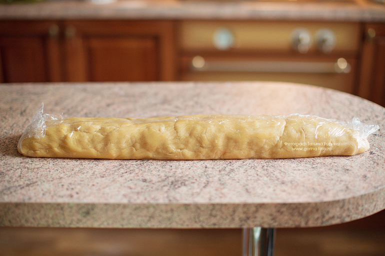 - получившееся тесто скатать в "колбасу" и завернуть в пищевую пленку, после чего отправить в холодильник минут на 30