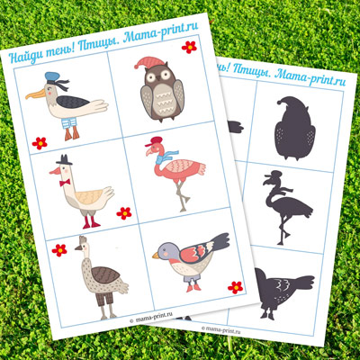 Упражнения по поиску одинаковых картинок и теней направлены на развитие устойчивости и концентрации внимания. С симпатичными птичками это будет делать ещё интереснее!