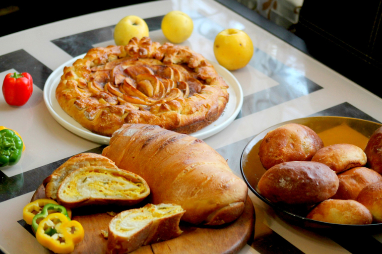 а так как эти чудесные вкусно пахнущие яблочки просто не давали мне покоя...решила уж если затевать затевать тесто то уж по полной программе))) и вот испеклось у меня всего по чуть чуть)))))))))