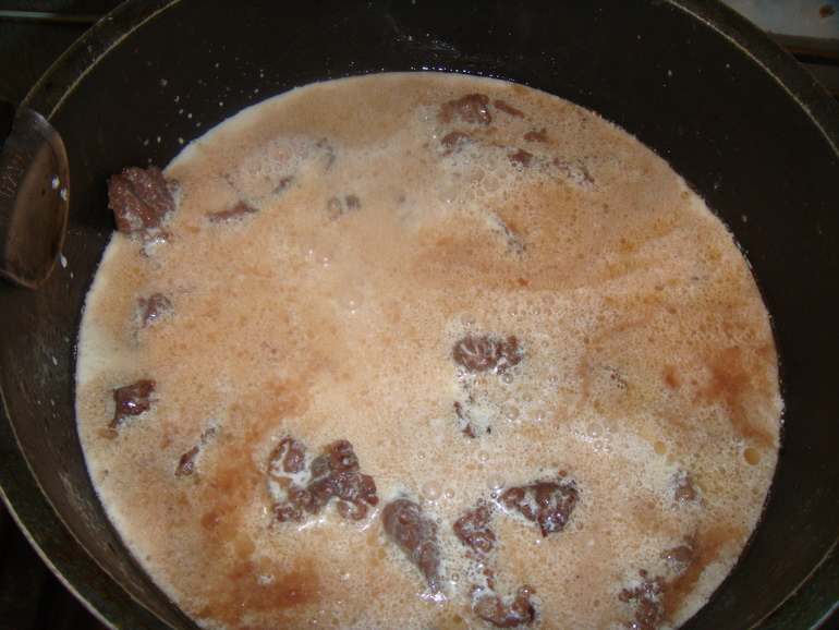 После закипания снять пену и убавить газ. Тушить 20 минут: