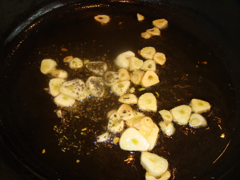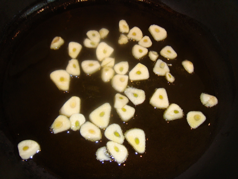 В разогретом растительном масле прогреть несколько секунд чеснок: