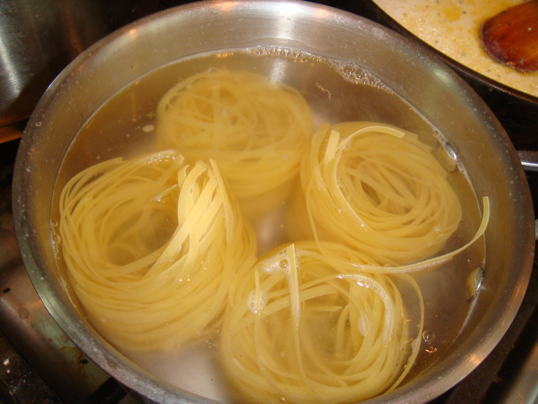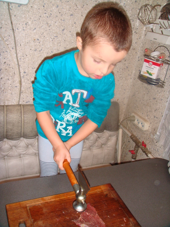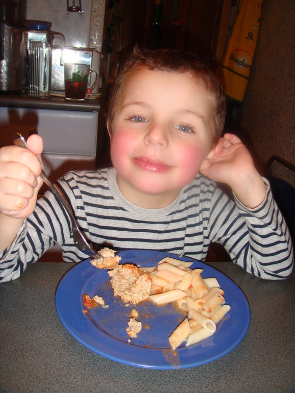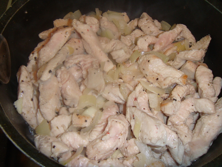 Тушить вместе 5 минут. Подавать с любимым гарниром (у Вовы это макароны):