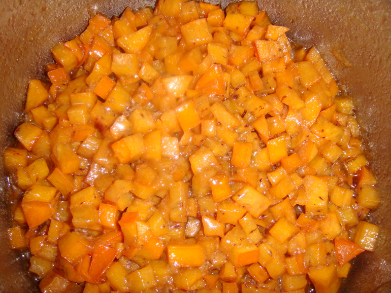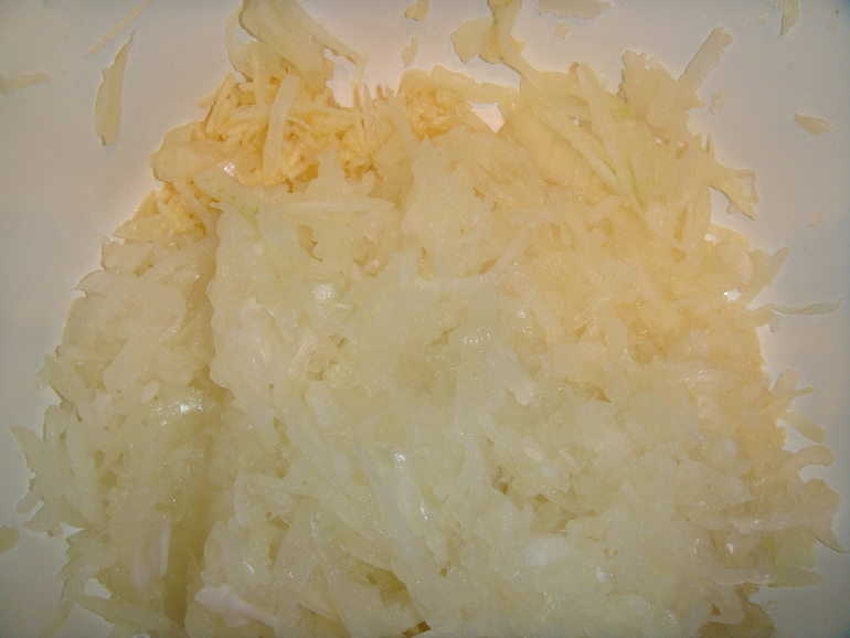 Спассеровать натертый лук с 5 см натертого корня имбиря: