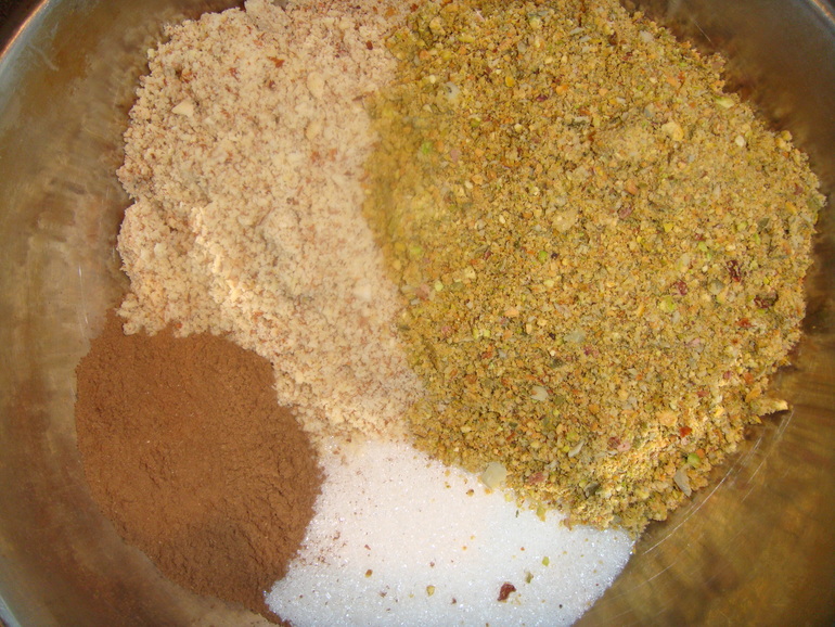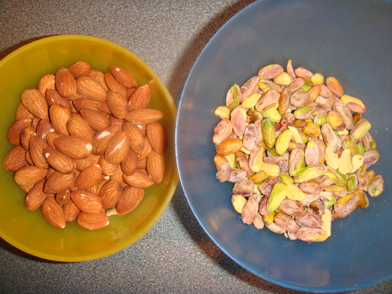 Понадобится пол стакана фисташек и пол стакана миндаля: