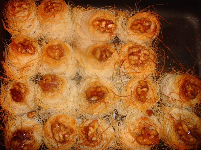 Мы готовили бараньи "семечки", пастрому, баранину с черносливом, катаифи, пирожки из фило с потрошками, ватрушки с хурмой.