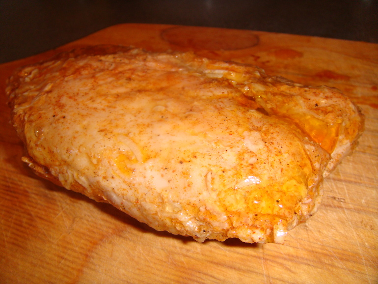 Снять с куриного филе кожу, срезать мякоть с кости: