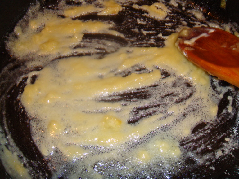 На сковороде со сливочным маслом поджарить 2 ст.л. муки::