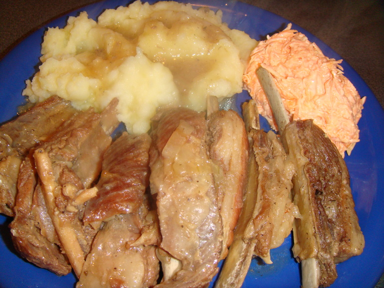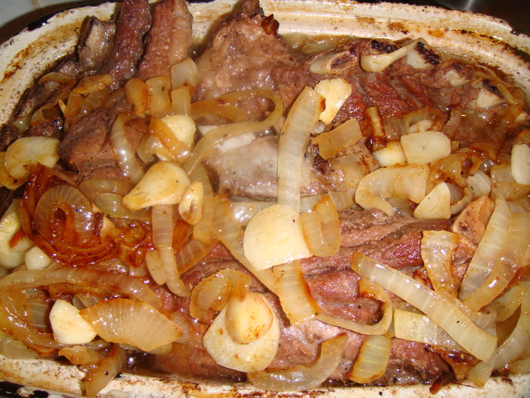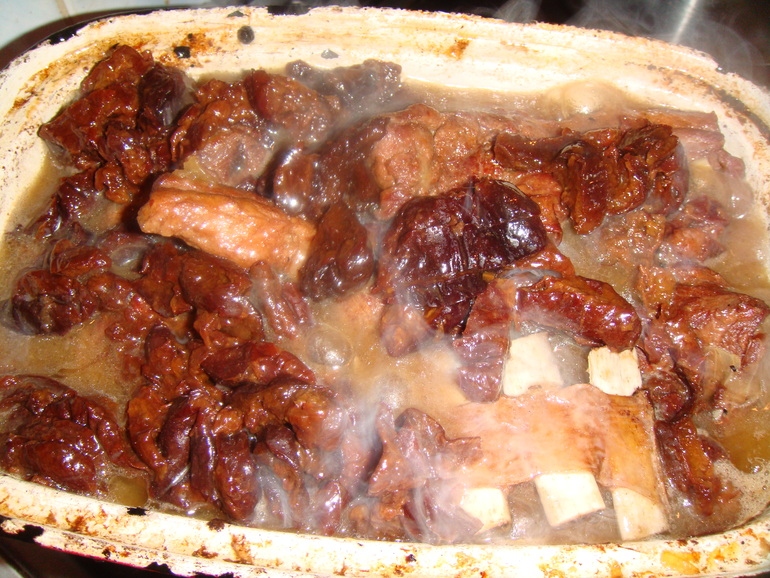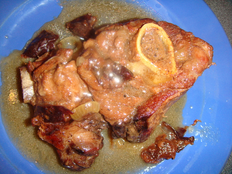 Подавать с вкуснейшим соусом, который получается из растворившегося при готовке чернослива, лука, чеснока, пряностей:
