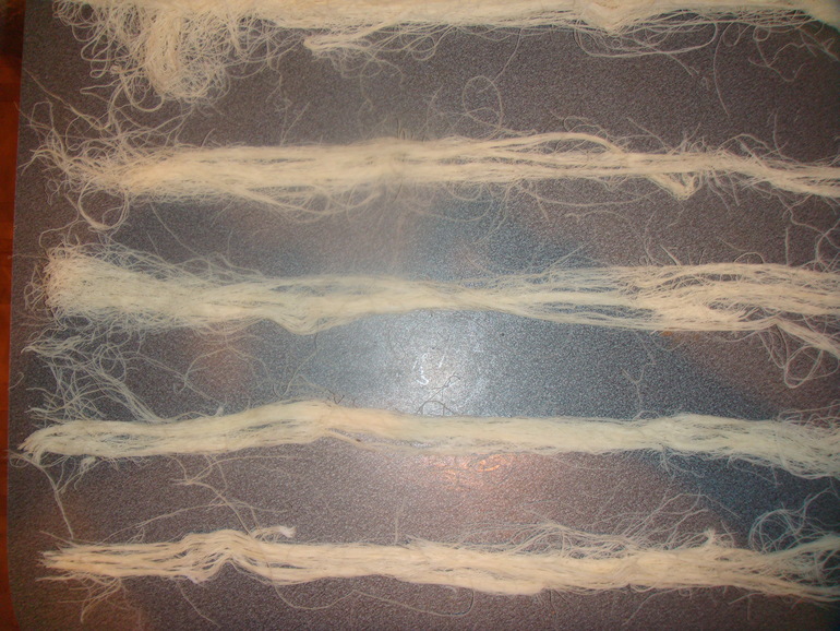 Отделить от теста прядь (3-4 см), разложить на столе: