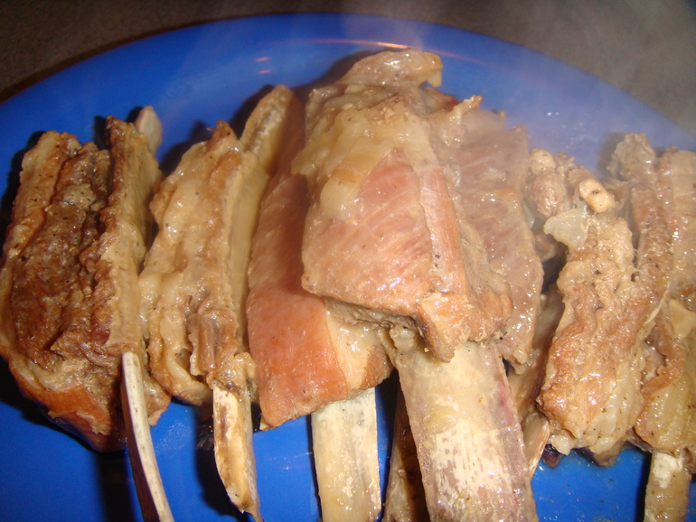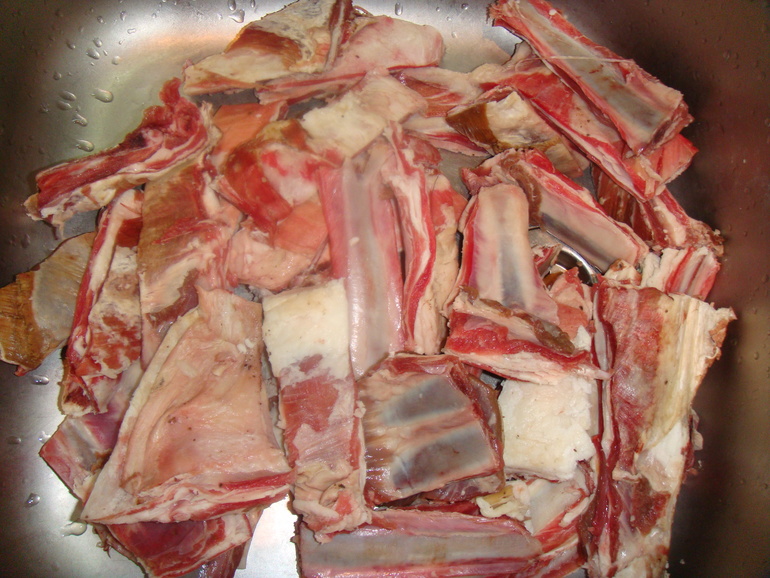Нам понадобится много бараньих ребрышек.Разделить ребрышки по 1, промыть и обсушить: