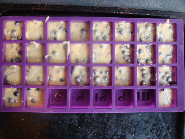 Поедая эти кексики мы с Вовкой играем. Я складываю их буковками вниз: