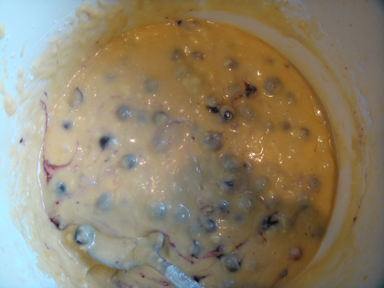 Добавить 50 г растительного масла без запаха, 1 стакан муки, 1 ч.л. разрыхлителя теста и перемешать лопаткой:
