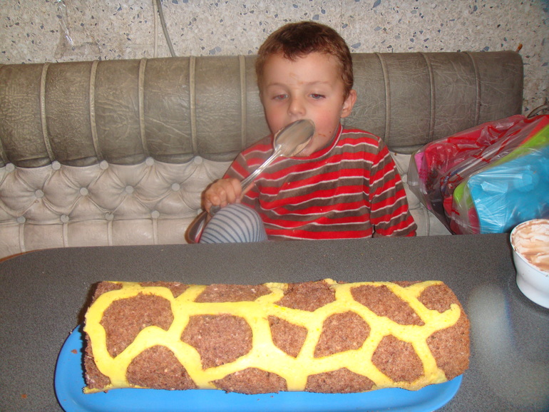 Положить на блюдо и поставить в холодильник. И правда - жирафовый: