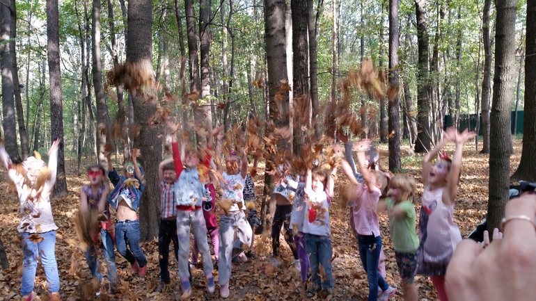 а потом кто-то сказал - Кидаем листья!!! ох)) еле отмылись от такого буйства))