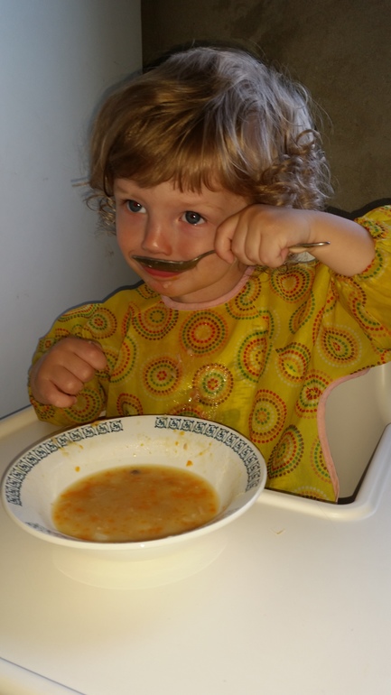 1) Лев стал кушать сам суп!) Ложку, которой я его кормила, стал игнорировать. Рот закрывает, зубы сжимает и не уговоришь его)) выдала ему ложку и начал сам кушать!) Хорошо, что сейчас делают длинные, удобные слюнявы, потом отмываю его и стульчик) но кушает чистенько, много не льет))