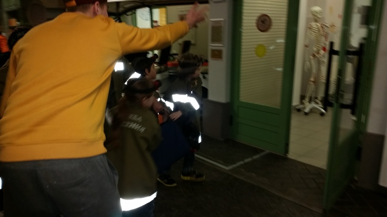 Дальше в темном здании искали маникен Жорика)), доставали его из-под завала и на машине повезли в больницу))