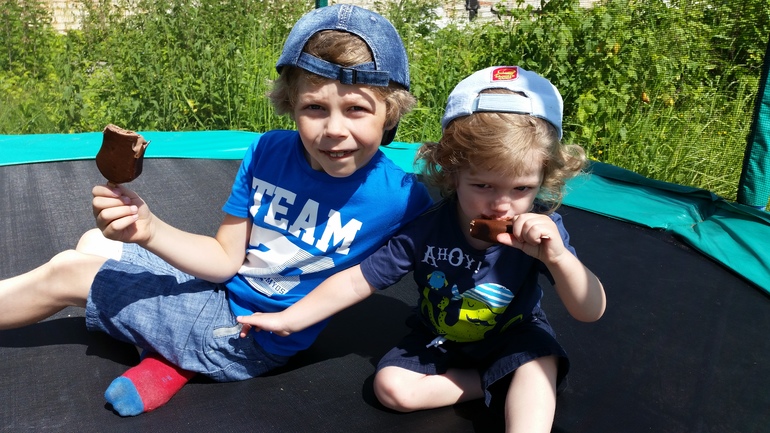 Мальчишки просто фанаты мороженого), в этом году Лео съедает сам полностью мороженое)