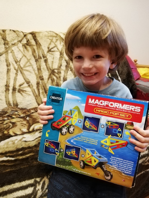 В этот раз пробыли 5 минут в кабинете))), Лев получил набор Магформерс.