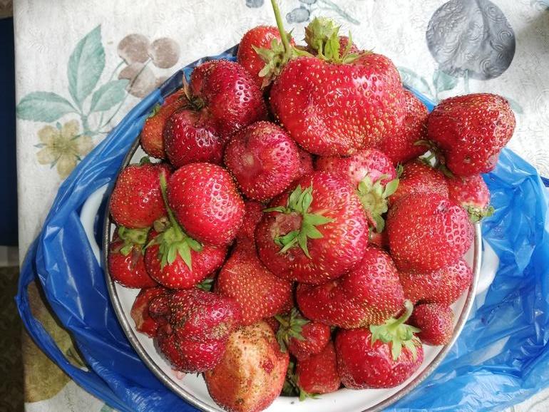 Клубнику бабушка даёт, у неё "гигантела", пришлось даже резать, ягоды огромные))