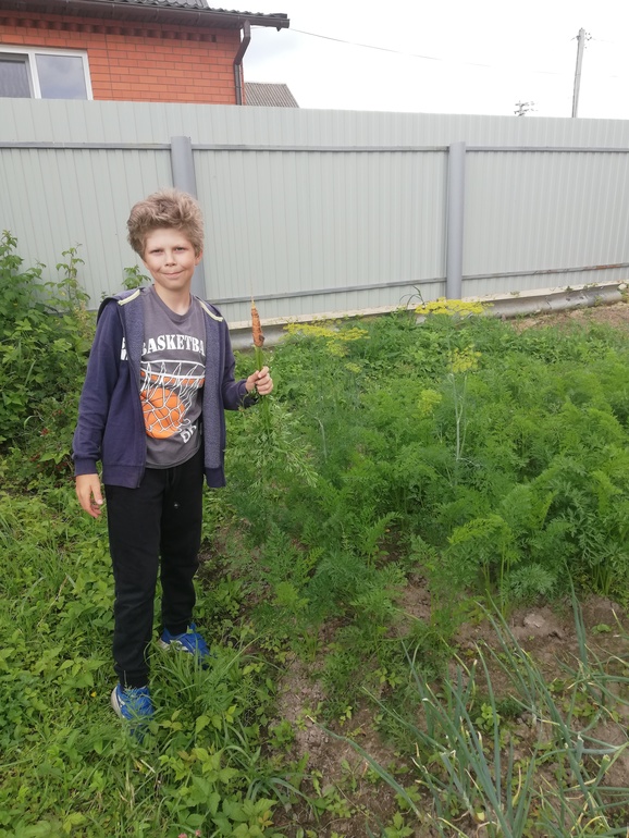 А ещё морковку начали вытаскивать, уже прилично выросла, можно начинать есть!)