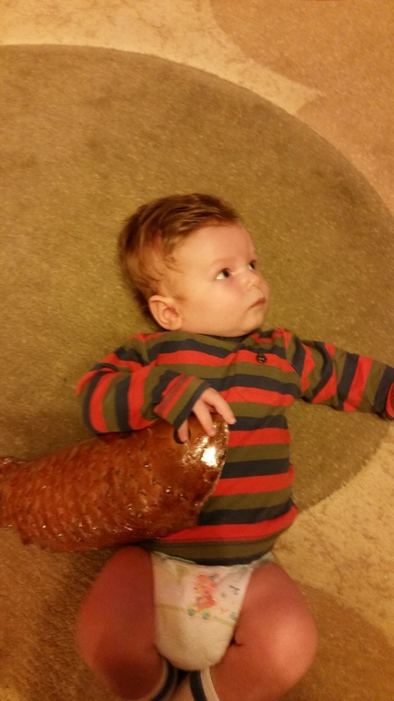 Вчера, я как обычно положила Лёвика на животик, а сама со всеми остальными села рядом умиляться его новым достижением))) Лёва был в хорошем настроении, хорошо держал голову, долго, потом видимо устал и хотел её тихонечко положить, но она неудачно перевесила и он повернулся на спину))) Ребенок удивился - это для него было неожиданно))) т.к. лежание на животе он воспринимает как какое-то наказание))) После этого я его опять на животик положила, но не тут-то было, он переворачивается обратно)))