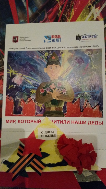 Делал с логопедом пластилинографию на конкурс к 9 мая. Фотки нет, не успела сделать, нужно было срочно отправлять работу. А сегодня дали билет на концерт, где будут выставляться все работы, Сашульке подарят подарок и диплом.