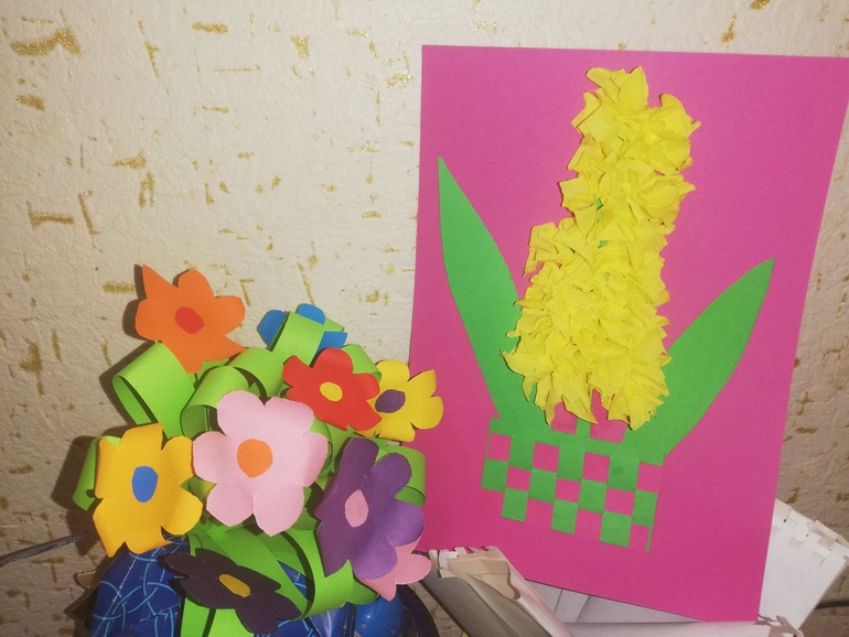 С утра мальчишки подарили поделки. Левину я, конечно, видела, а вот Санина стала сюрпризом))