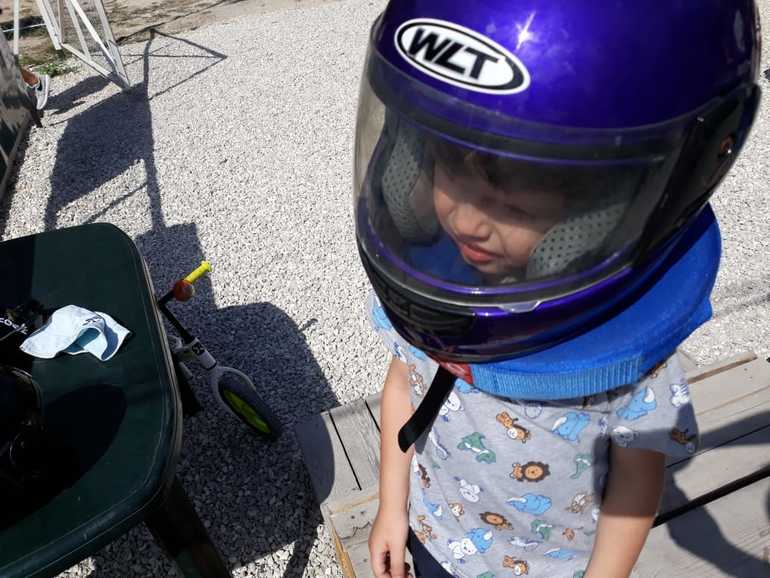 Вчера Лев впервые прокатился на карте, 3.7 года. Хорошо, что фотки мне после показывают))