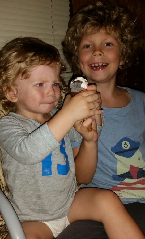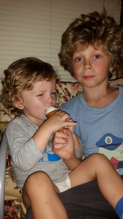 Наблюдать за ними было очень смешно) у кого рожок - тот счастлив) и ведь самое примечательное, что как только рожок у Льва, то он лизнет пару раз и отдает Саньку, но как только Саня забирает, то тут же начинает просить обратно). Потом все поделили по-честному: как обычно - Санюше мороженое, а Лео вафельный рожок, он их больше любит, чем само мороженое)