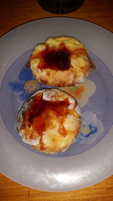 Увидела рецепт здесь,на ББ. И решила попробовать, т.к. Лео постоянно их просит, а жаренное не хочется ему давать. Результат превзошел ожидания - Сашуля отлично поел их с клубничным вареньем, я и Левиком ела просто так с чаем))