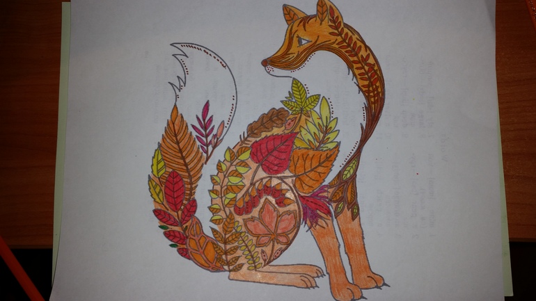А еще мы с Сашулькой увлеклись раскрасками - антистресс))) Вчера я раскрашивала свою лисичку, сегодня Сашулька тоже попросил и ему лисичку распечатать)))