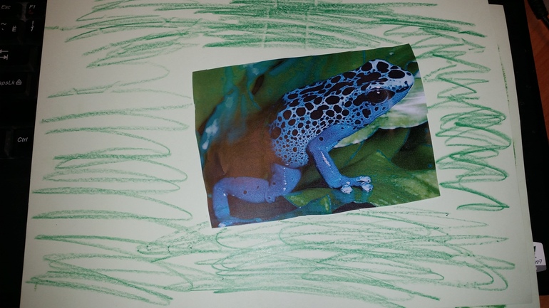 На прошлом занятии проходили лягушек!) В творческой части они делают типа поделок. И вот что принес Санек: