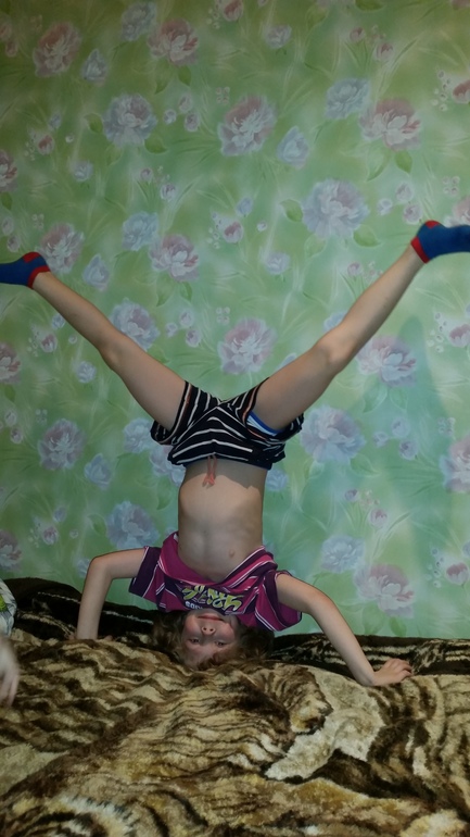 4.5 мес. айкидо и Санек стоит на голове!))) Причем в последнее время это его любимая поза))) только уроки не делает в таком состоянии и за столом сидит нормально. В остальное время только так!)))