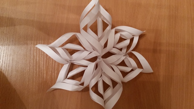Сделали сегодня снежинку! Разделили труд)) я нашла идею в инете и делала надрезы, Санек складывал квадратики и склеивал лучики снежинки, собирали композицию вместе. Итого потратили час)) Вот наша красотка!!!))