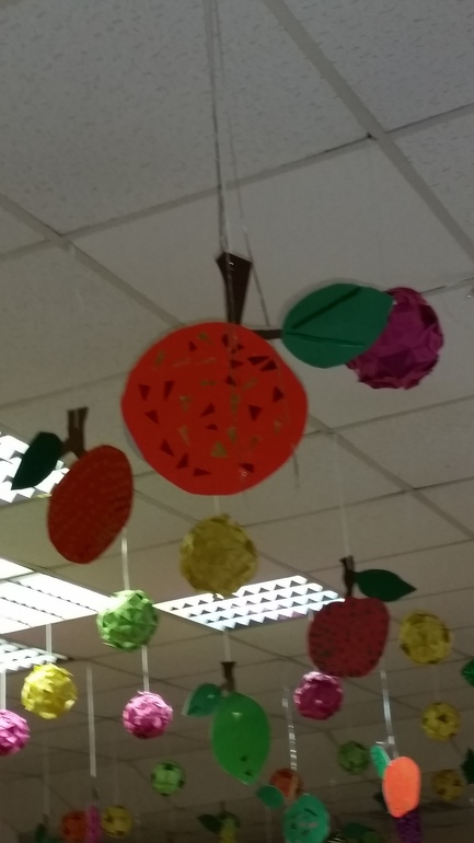 А по дороге увидела их работы по технологии - они делали фрукты для обезьянки, год которой скоро настанет!