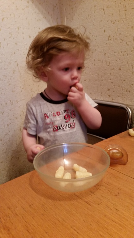 На фоне всего спит плохо, ест - проще сказать не ест. Пьет очень много, постоянно с поильником ходит)))