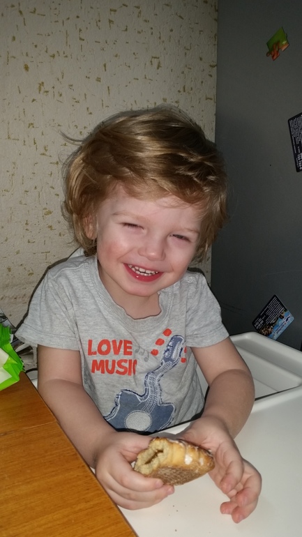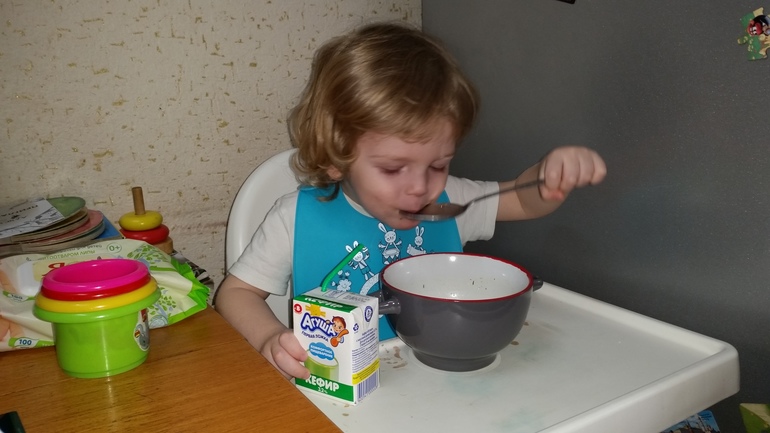 Кушает по-прежнему всё и много, но худющий)) любит суп любой, мясо, рыбу, кабачки, баклажаны, крупы, хлеб, молочку обожает, печенье с изюмом - хит)), сушки, фрукты все ест, особенно любит бананы, яблоки, мандарины, груши.