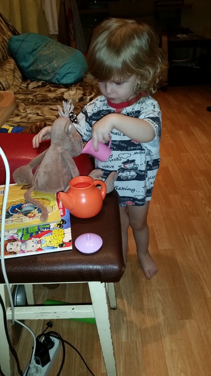 Очень любит паровозики из Чагинтона,(остались от Санюши), любит доставать их из кейса, играет с ними и складывает обратно)), ну и раскидывать тоже любит). Собрали ему икеевскую ж.д. Тоже любит по ней паровозики катать, а также машинки, да и сам любит просто по рельсам ходить, или на беговеле ездить). Также любит эту дорогу разбирать), в последнее время пытается и починить её))