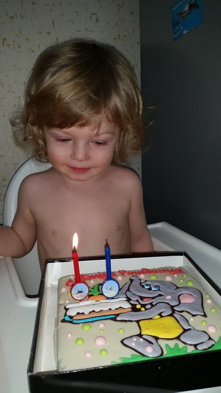 На фото больной, с темпой под 39((, одну свечку задул сам, вторая усиленно не поддавалась ему)