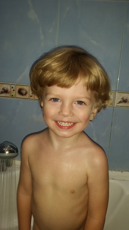 Я постригла Лео шевелюру!!! Криво, конечно, он крутился как мог, еще буду подравнивать. Может удасться в парикмахерскую его завести, за киндер!!!